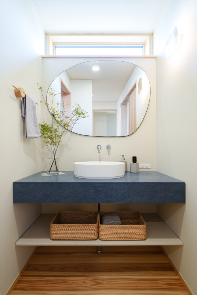 洗面コーナーは、並んで使えるゆとりの広さを確保。小さな空間だからこそ、毎日の時間が楽しくなるように、こだわりをぎゅっと詰め込みました。