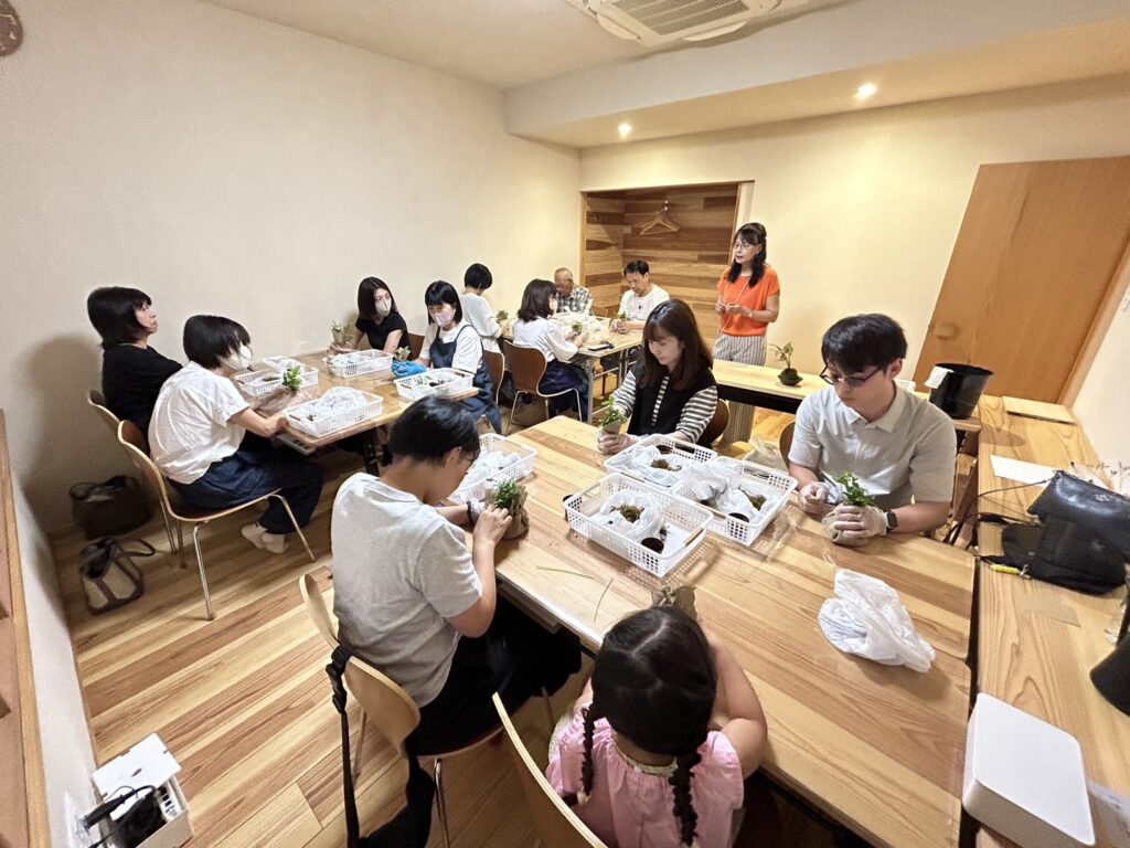 今回のワークショップでは、皆さま思い思いの苔玉を作り上げ、「自分で作ると愛着がわいて、育てるのが楽しみ」と、笑顔で感想をお話しくださいました。
