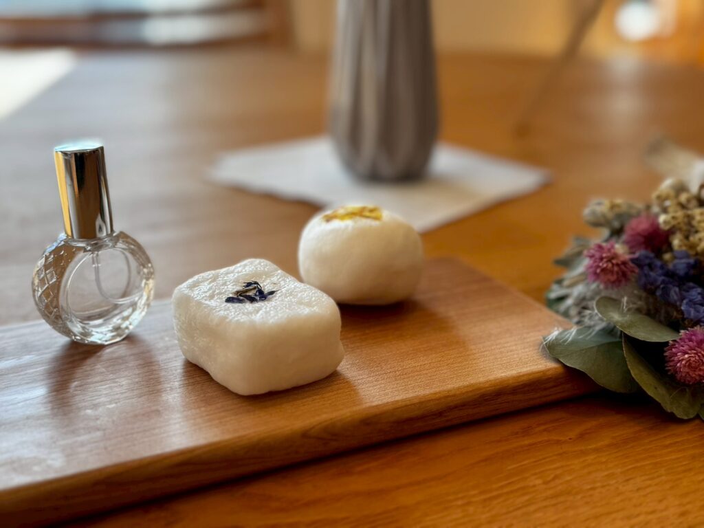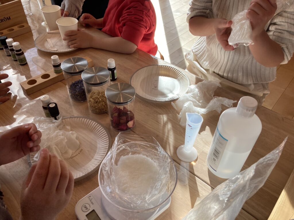 こねこね石けん・バスボム・アロマスプレーの中からひとつ選んで体験。