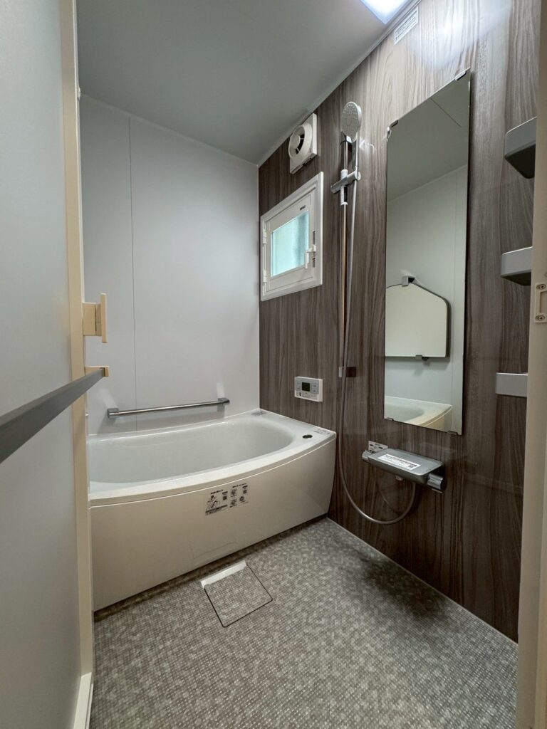 壁や床はタイルからパネルへ変更。汚れが付きにくく、お掃除もしやすくなりました。安全性・機能性ともに向上し、毎日の入浴がより快適になっています。