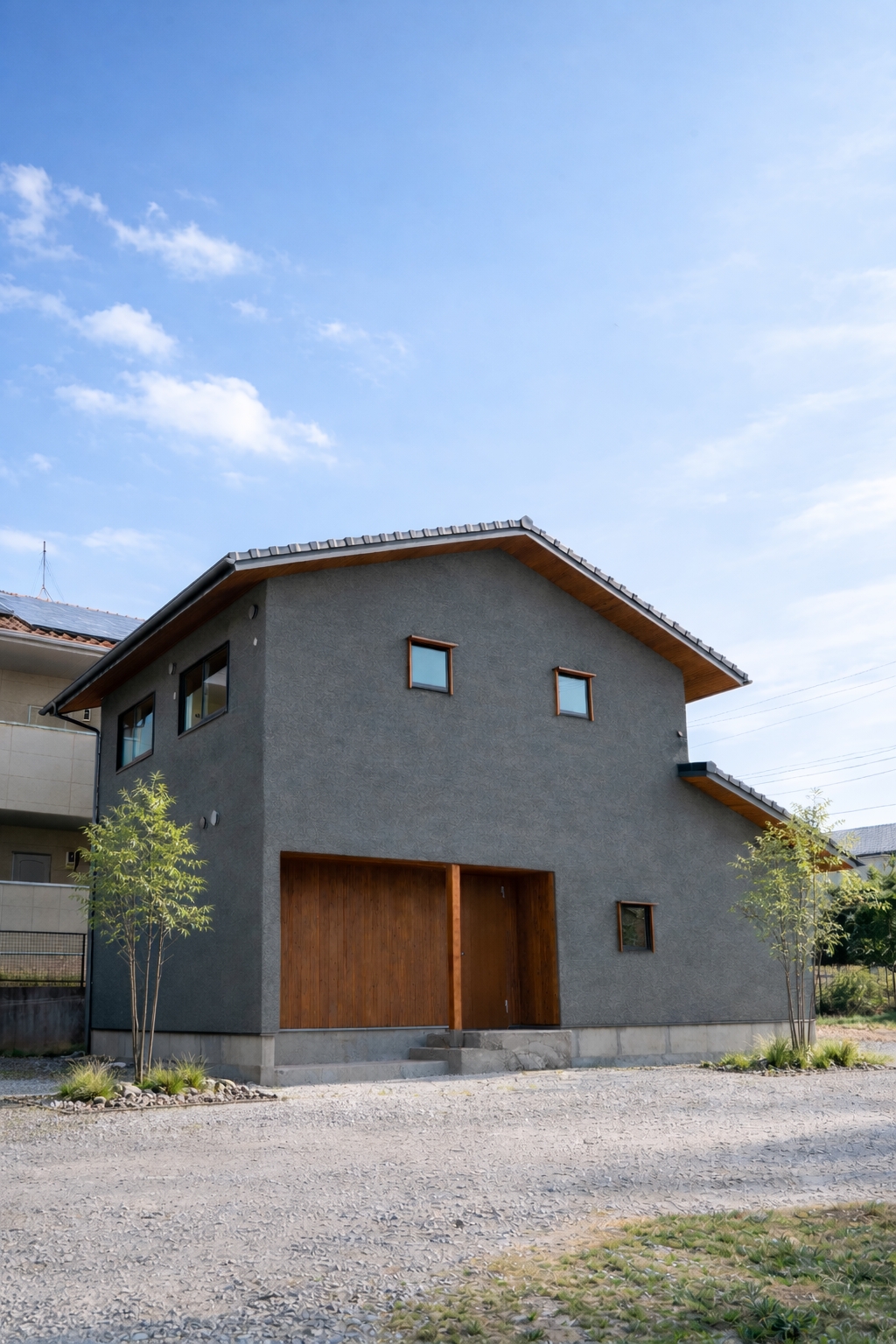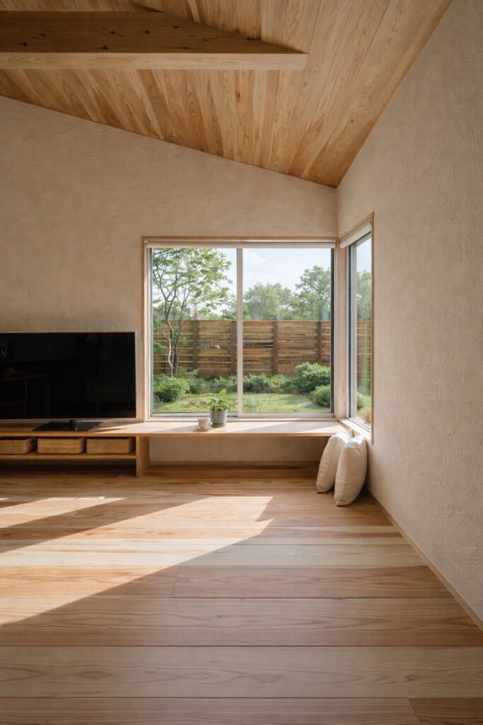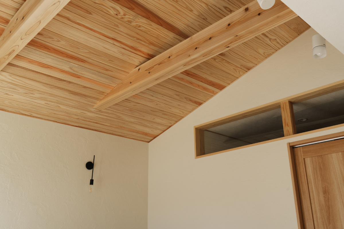 自然素材がもたらす、やわらかな心地よさ。空間にのびやかな広がりを生む勾配天井。