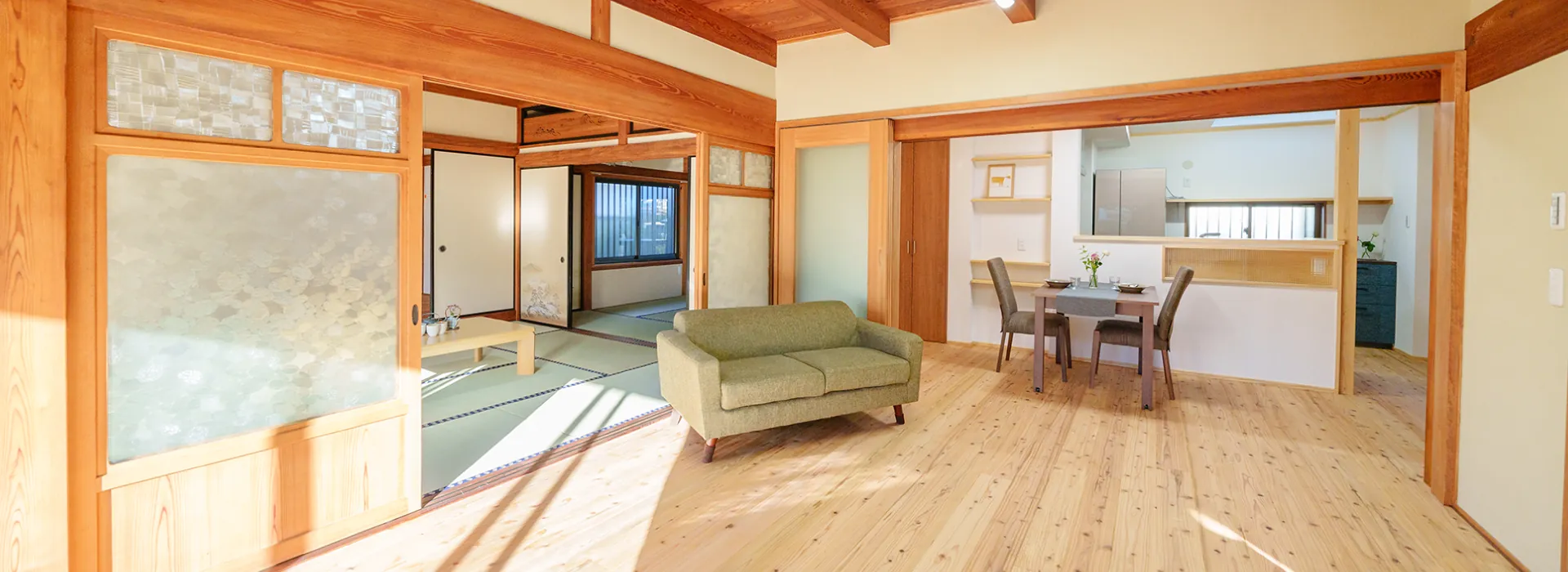 庭とのつながり、上下階の空間構成、増築の可能性。戸建てならではの自由度を最大限に活かし、ご家族の理想をダイナミックに実現します。構造躯体だけを残し、内外装から断熱、耐震性能までを一新することで、新築同等、あるいはそれ以上の価値を持つ住まいへと再生させます。