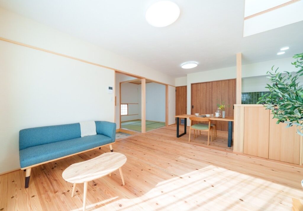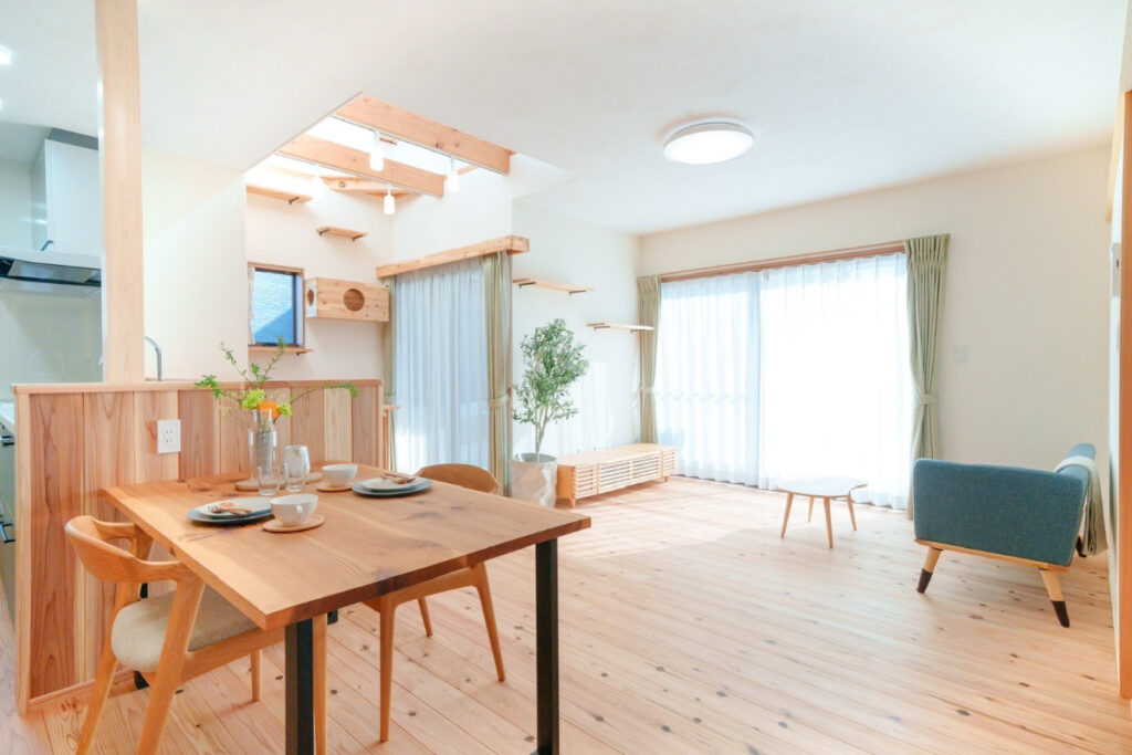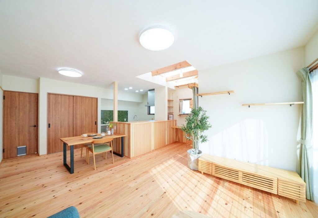 無垢の床のぬくもりを感じられる木の住まい。