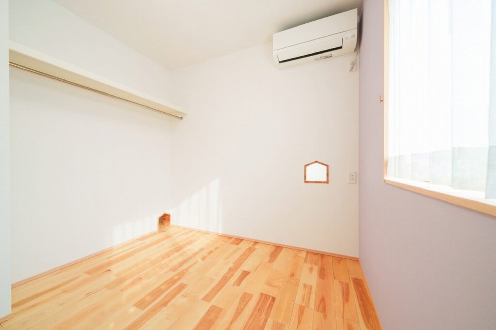 猫の通り道を設けた洋室。
