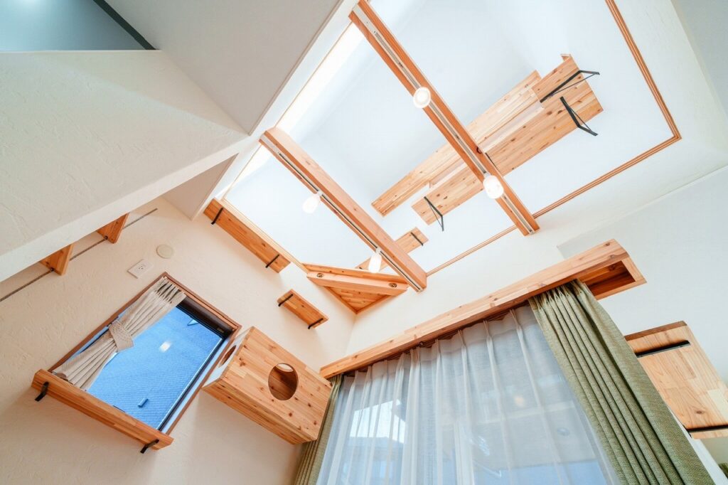 キャットウォークを設け、猫たちも楽しめる工夫を取り入れました。